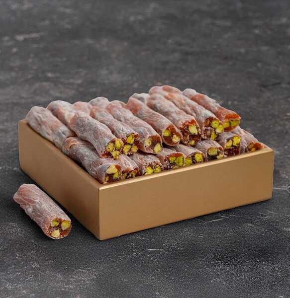 İçindekiler: Şeker, Antep Fıstık İçi, Mısır Nişastası, Buğday Nişastası, Vanilya, Pudra Şekeri, Portakal Aroması, E-129 Gıda Boyası, Sitrik Asit (E-330).