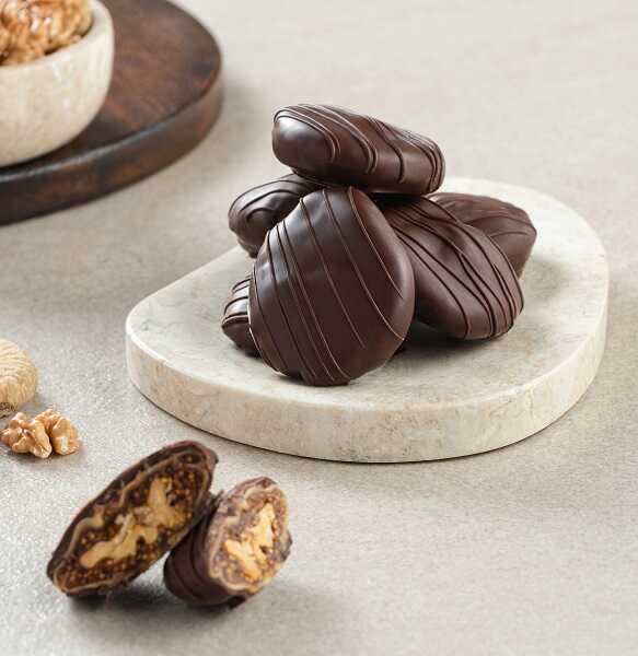 İçindekiler: İncir, Ceviz İçi, Bitter Çikolata, Şeker, Kakao Yağı, Kakao Kitesi, Emulgator (Ayçiçek Lesti E322), Doğal Aroma Verici (Vanilya), Parlatıcı (Gum Arabic), Badem, Kakao Kuru Maddesi (Min: %55).