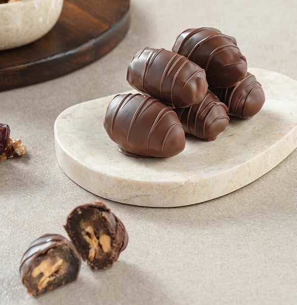 İçindekiler: Kudüs Hurması, Ceviz İçi, Çikolata, Şeker, Kakao Yağı, Kakao Kitesi, Emulgator (Ayçiçek Lesti E322), Doğal Aroma Verici (Vanilya), Parlatıcı (Gum Arabic), Badem, Kakao Kuru Maddesi (Min: %55).